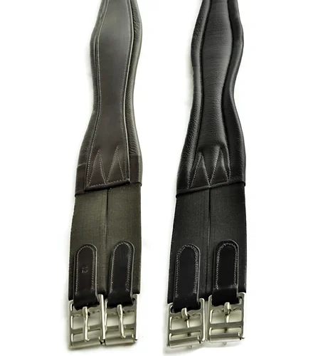 Stainless steel roller buckles aid the rider when adjusting this girth. Beware of girths that do not feature shaped leather, as these have the adverse effect of applying pressure along this strap when tightened.