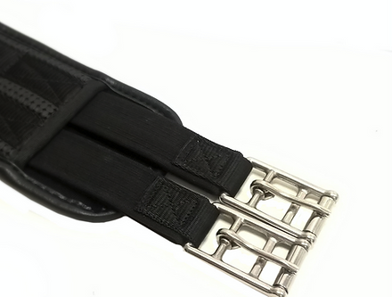 We have also added elastic on both ends to ensure perfect balance when fastening. Stainless steel roller buckles aid the rider when adjusting this girth.