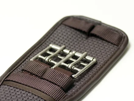 We have also added elastic on both ends to ensure perfect balance and ease when fastening. Stainless steel roller buckles aid the rider when adjusting this girth.