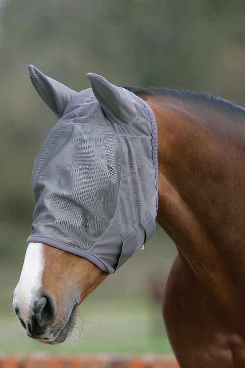 Fly Mask with Ears with fleece lined binding for extra comfort.