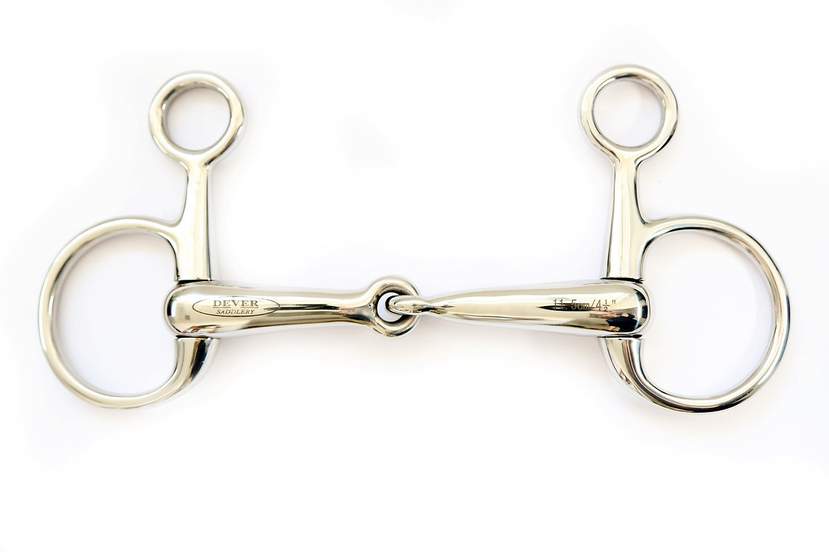 This Hanging Cheek Hollow Jointed Snaffle also known as a Filet Baucher Snaffle has separate rings to which the cheek pieces of the bridle are attached. Unlike other snaffles the cheek pieces will exert some pressure on the horses poll.