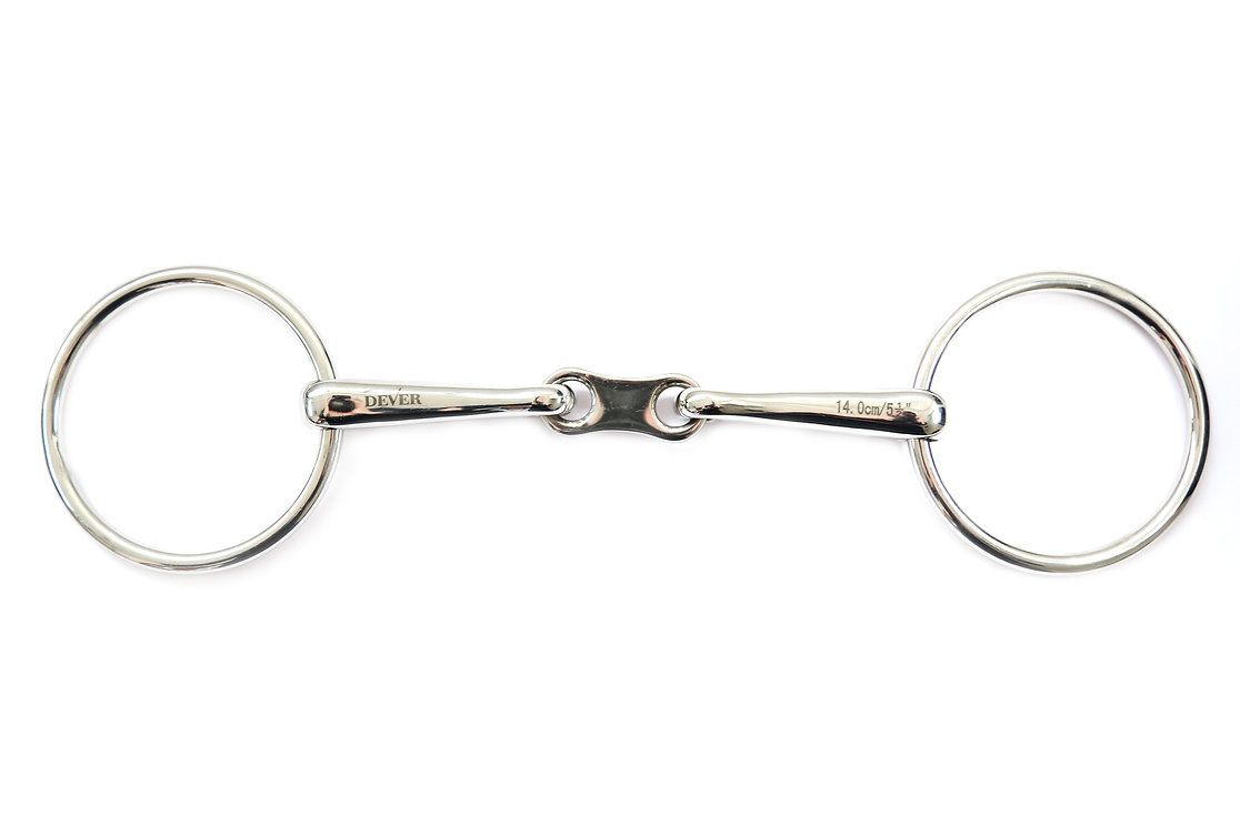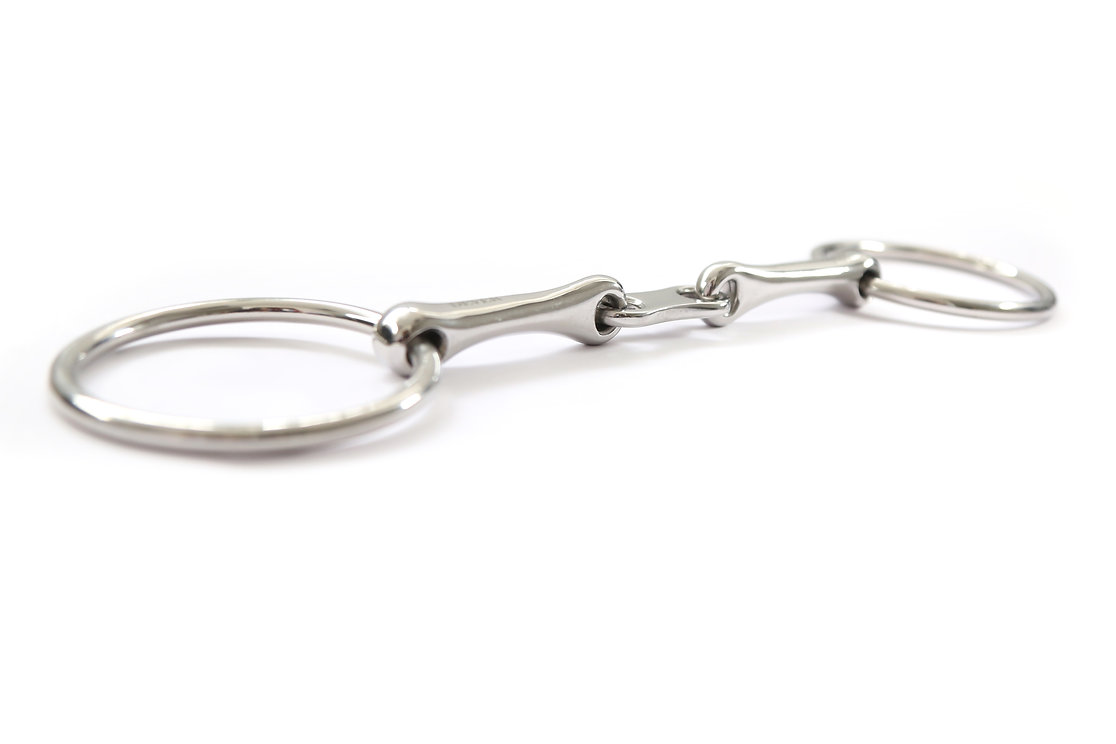 Este filete de anillas sueltas con eslabón francés tiene un eslabón en forma de riñón en el centro de la boquilla.. Este enlace aumenta la flexibilidad de la broca y alivia la acción del cascanueces.. También favorece que el caballo se ablande en la boca..